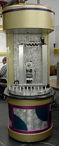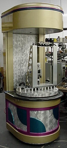 Designed primarily to showcase modern technology, this miniature milling machine will be the centerpeice of a kiosk at a major theme park. The milled artwork from this machine will be sold to the parks visitors.