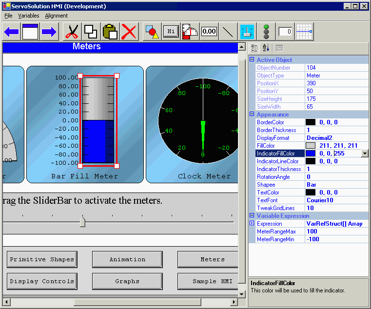 Once these controls are added to your application, they can be edited, moved, sized, and even rotated. Finally, they can be linked to variables on your machine controller. ServoSolution HMI can simultaneously access variables on up to eight controllers, allowing you to control and monitor even the most demanding applications.